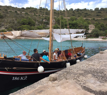 Departure from Komiža in the morning hours. Short presentation of gajeta Falkusa, its design and characteristics followed by interesting and amusing fishermen and pirate stories. Optionally, you can try your hand at traditional tools and ropes, learn the original terms for the parts of the gajeta, tie nautical knots and, of course, sail to the Island of Biševo. In this tour we will sail around Bisevo island with stops for swimming, Monk seal cave visit and optional Blue cave visit. Swimming break and fisherman's snack on the boat. Return to Komiža in the afternoon.