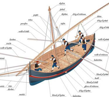 There were two ways of fishing, with two types of fishnets: trata and budel. Five-member-company was fishing with budel. On gajeta, there were five pairs of these nets and one pair had 4 interconnected budels. With these fishnets, fishermen of Komiža caught the majority of sardines on their offshore posts. On fishing positions around the islands of Vis and Biševo fishnets called trata were used for hauling fish huddled up under the fishing light. Up to 20 people, on several boats, worked together with trata at the same time. These fishnets required significant financial resources.