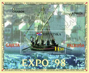 On the occasion of the 1998 Lisbon World Exhibition (Expo ’98), the Croatian National Bank minted a coin denominated to 25 HRK decorated with a gajeta falkuša.