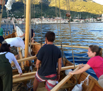 Teams have two gajetas at their disposal on which they can try their hand at sailing with a lateen, rowing with 8-meter oars, handling traditional tools and ropes, learning original names for parts of boat, tying knots, culinary skills, picking herbs, etc.